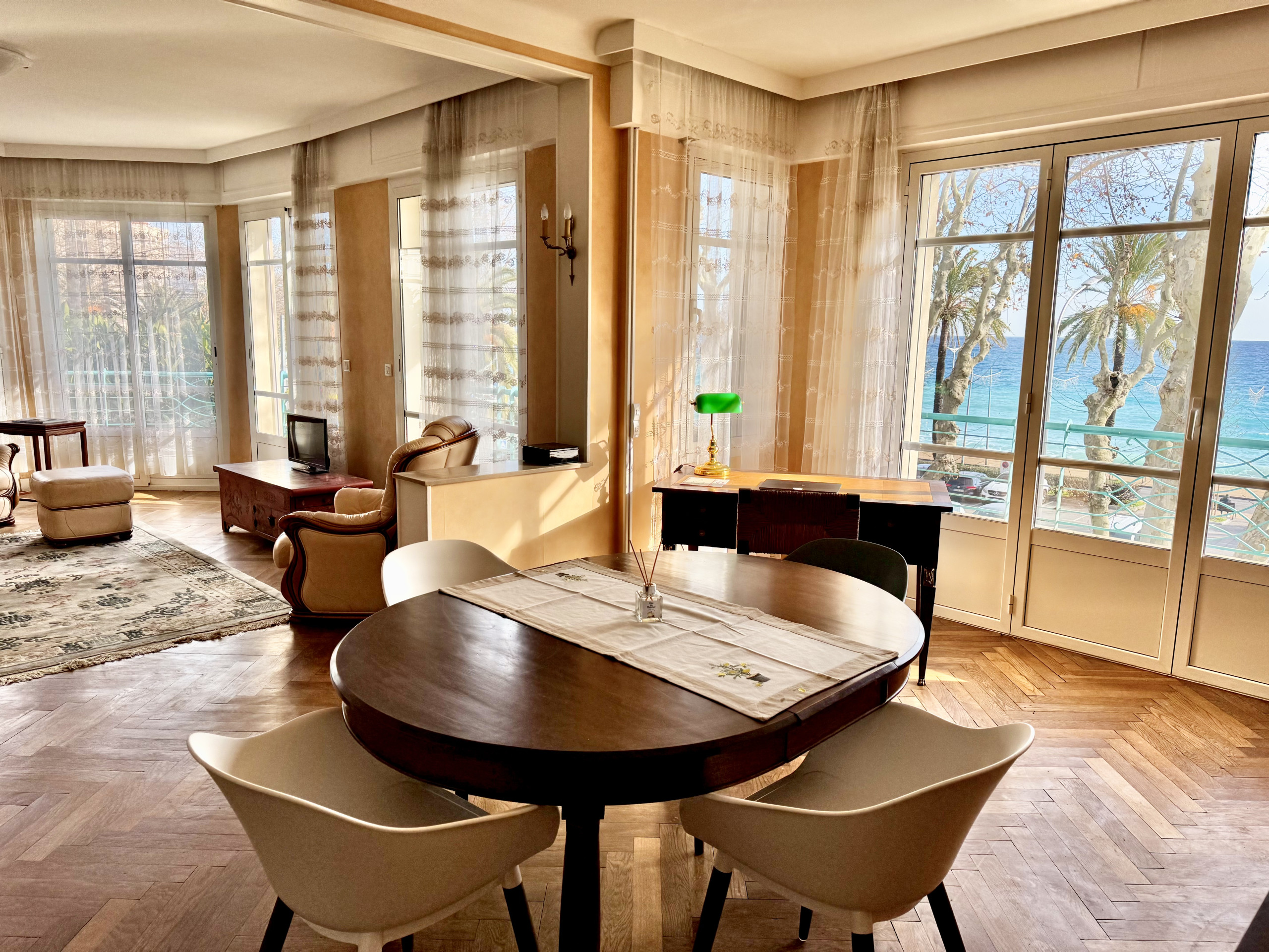 Vous serez au centre de Menton, avenue Edouard VII, à deux minutes à pied du bord de mer, des plages, des commerces et des transports (d'un côté de la rue se trouve la mer, de l'autre la gare SNCF).