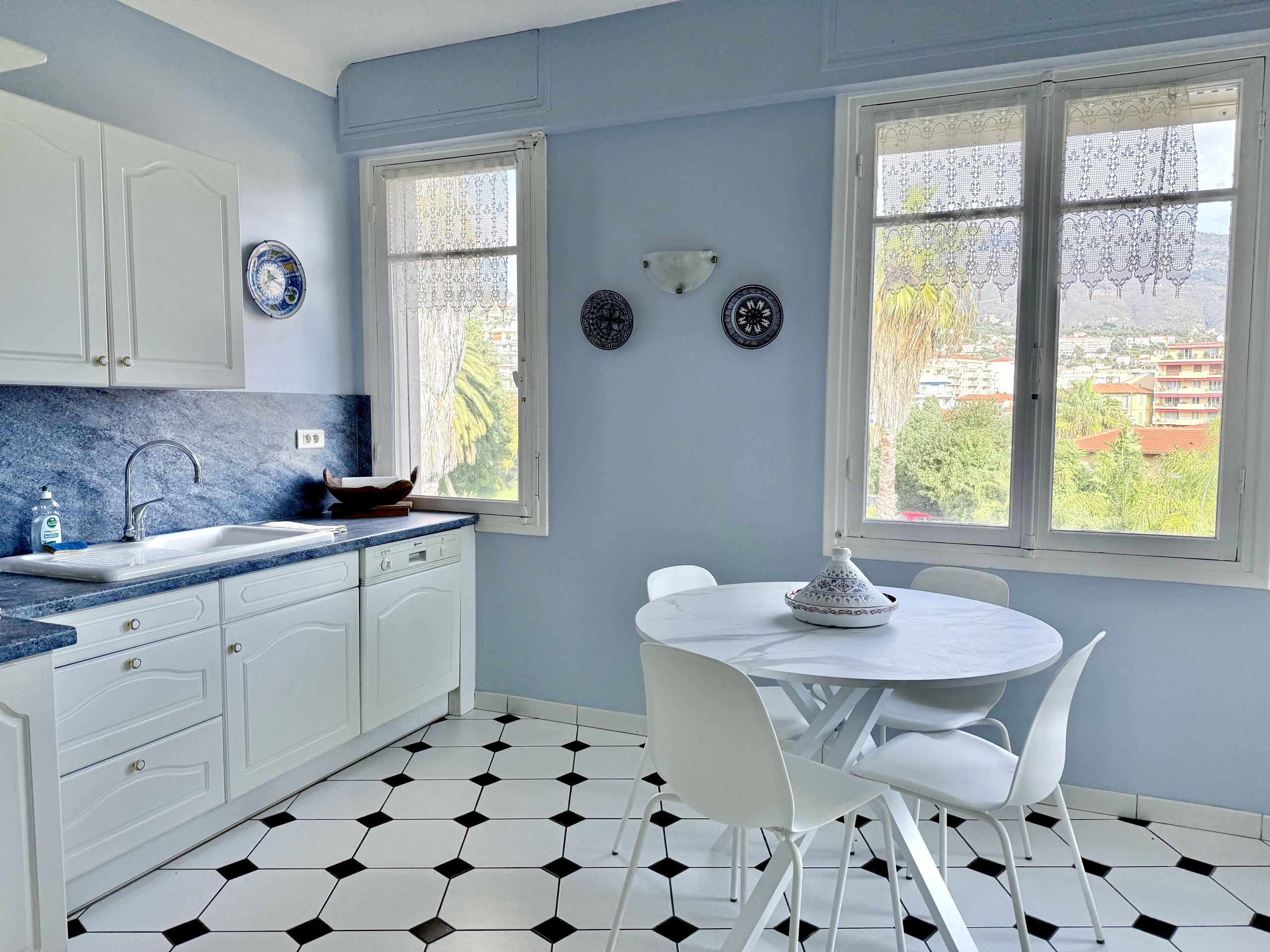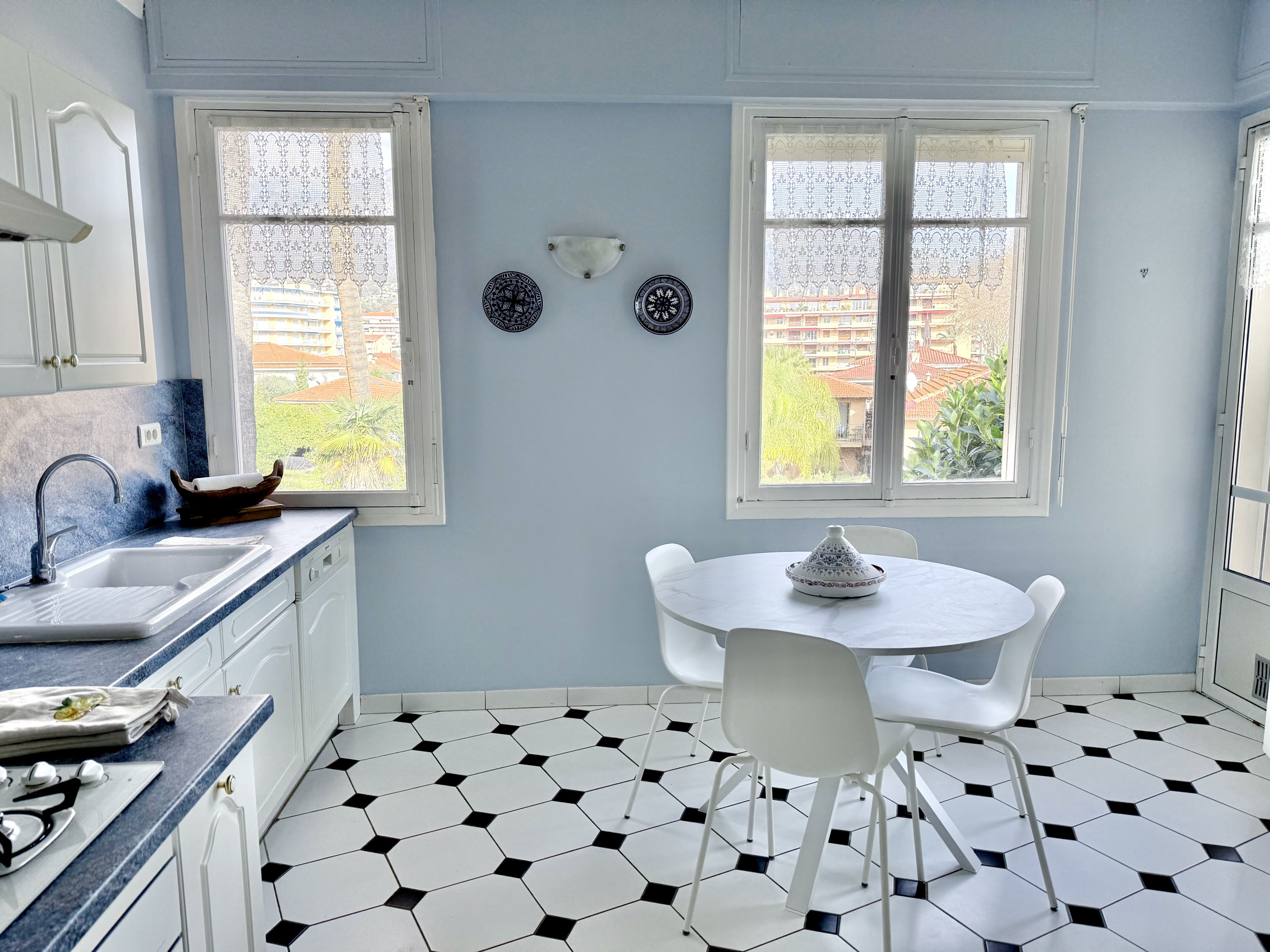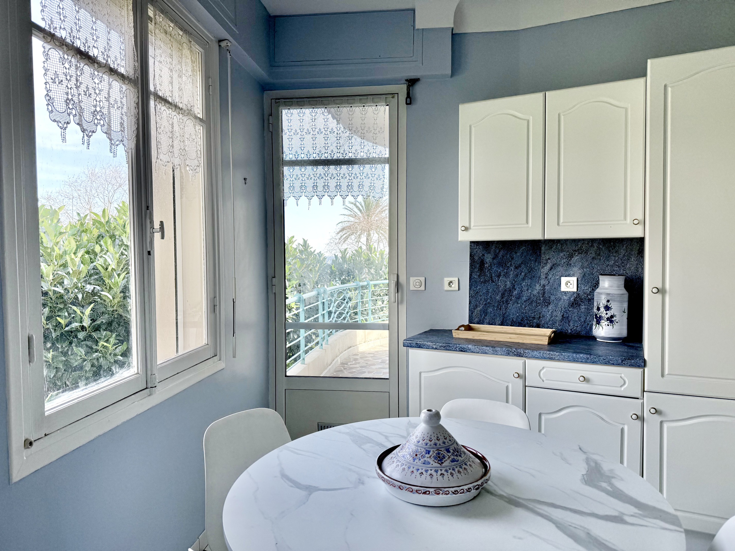 Vous séjournerez dans un spacieux appartement au dernier étage d'une petite copropriété Mentonnaise, en face de la mer.